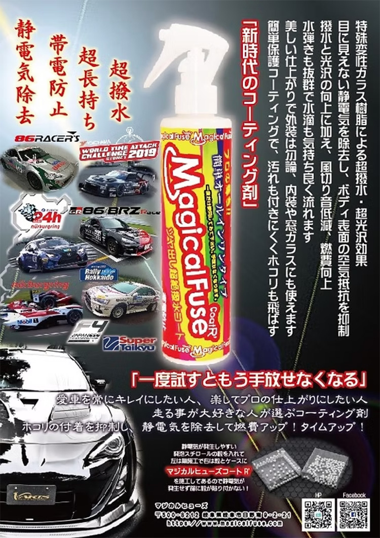 - マジカルヒューズコートR’ 超撥水のコーティングをしながらボディに帯電しないコーティング