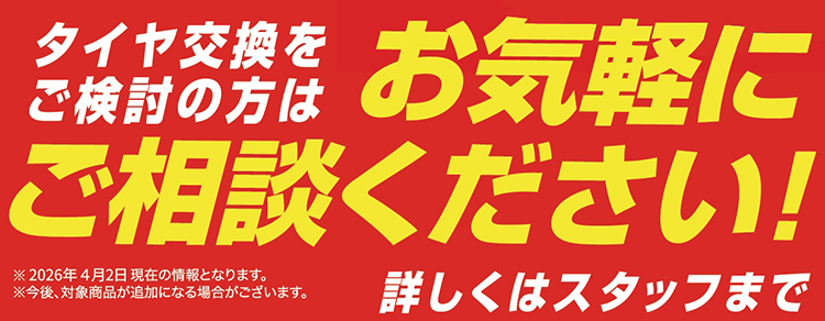 魅力的な特徴を徹底的にご説明&納得できる買い物のお手伝いをさせていただきます。安心&安全ドライブのために重要なタイヤのこともオートバックスへお気軽にご相談ください。【2026年4月掲載情報】